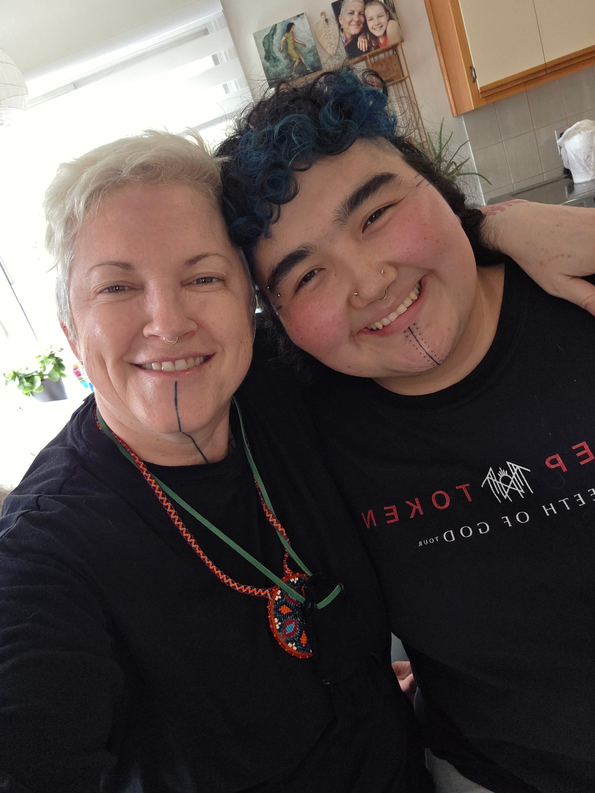 It’s a massive honour for me to be able to provide this medicine to my 2S community. Trans, Two-Spirit, gender expansive folks desire and deserve belonging, to have our own markings and celebrate our existences in the past, present, and futures, in this realm and in all realms. This is a way for us to Return from the diasporas we experience: physical, emotional, mental and spiritual diasporas. We often retreat within the self to stay safe and this is one of the ways we can Return. Our ancestors recognize and welcome us through our markings.
